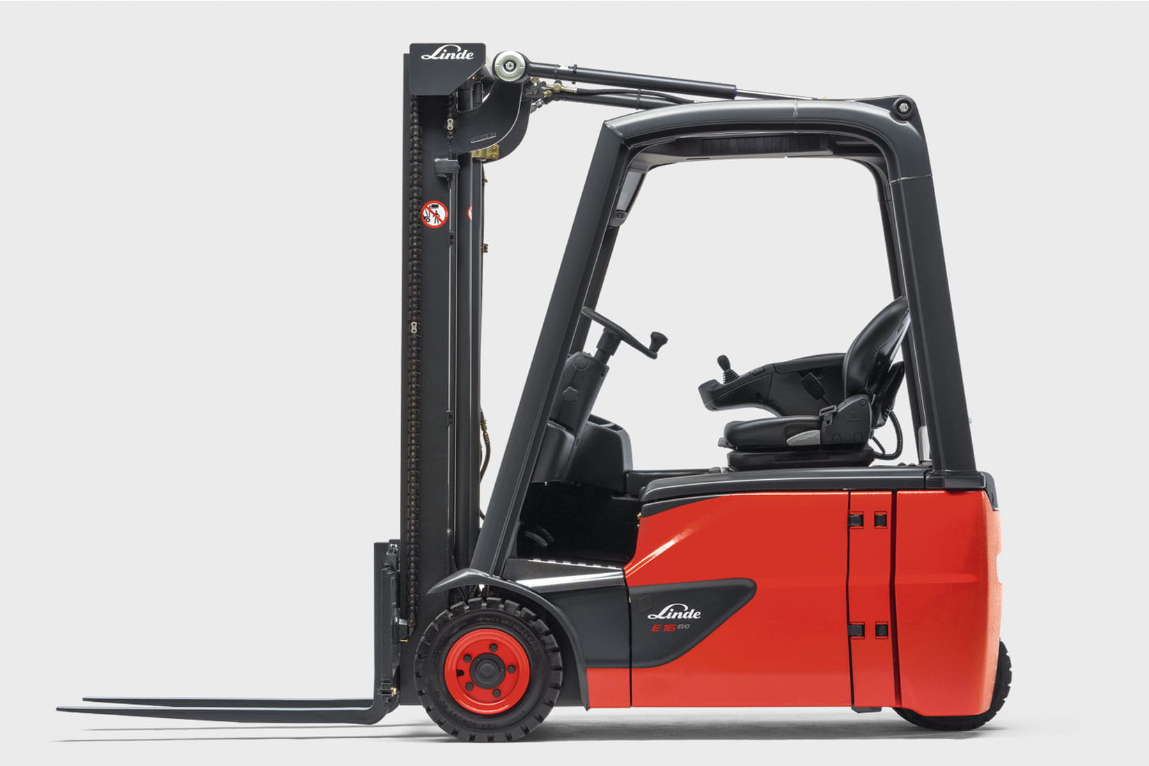 Linde E-16-E20 EVO electric forklifts in the popular weight classes from 1.6 to 2.0 tons set new standards of efficiency and low operating costs. This AC-based machine is characterised by innovation from its unique mast design to its maintenance free drive shaft with integrated engines.