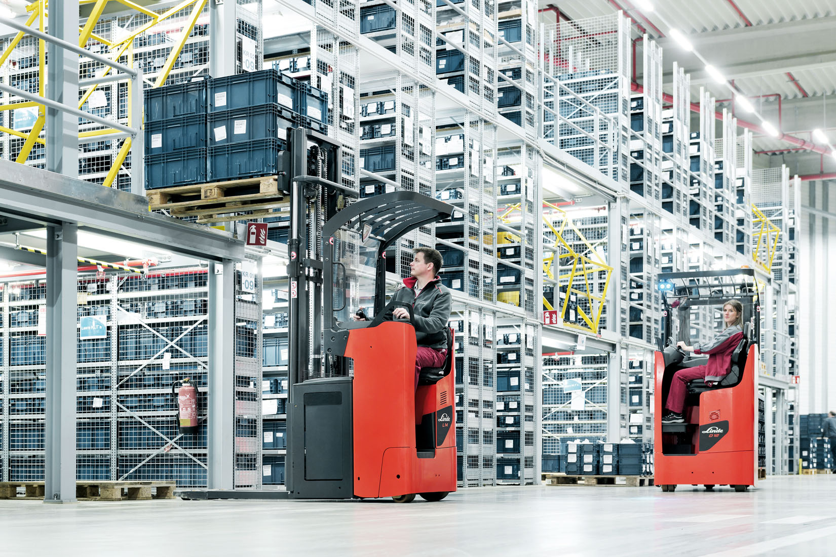 Linde L14-L16 R stackers for seated operators are designed for fast and efficient goods handling at medium lift heights. The stackers are extremely efficient, not least over longer distances as they can transport two pallets at the time.